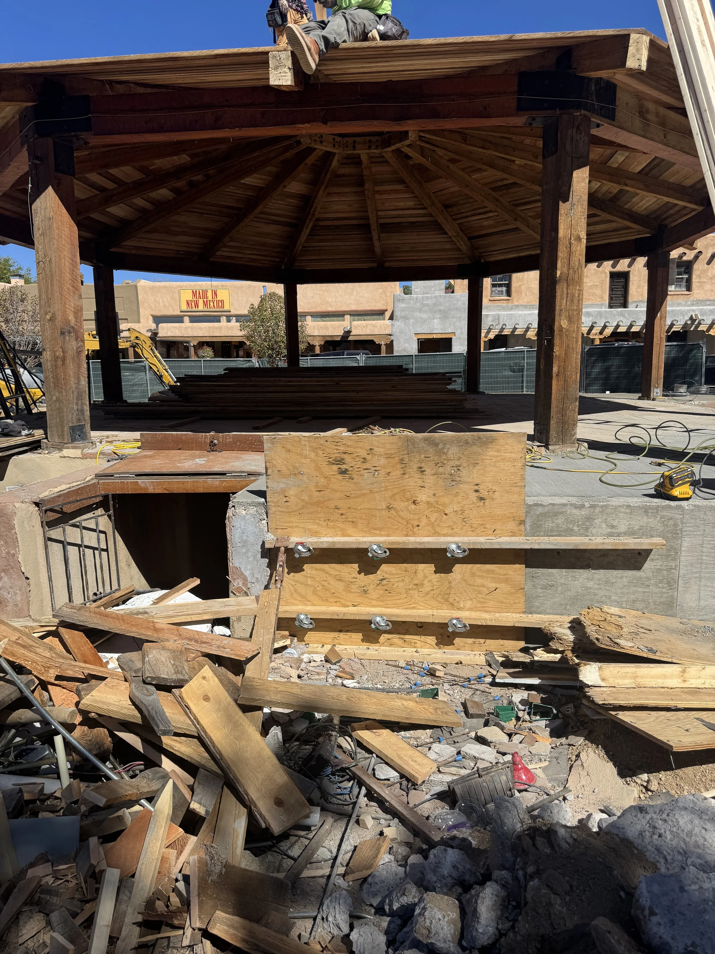 Taos, NM — August 20th, 2025 —Taos County and Taos MainStreet are pleased to announce that the next phase of the Plaza Improvement Project is officially underway, with construction now in progress on the renovation of the historic Taos Plaza Gazebo. These long-anticipated improvements are designed to preserve the Plaza’s unique character while making it a more vibrant, inclusive, and welcoming space for the entire community.