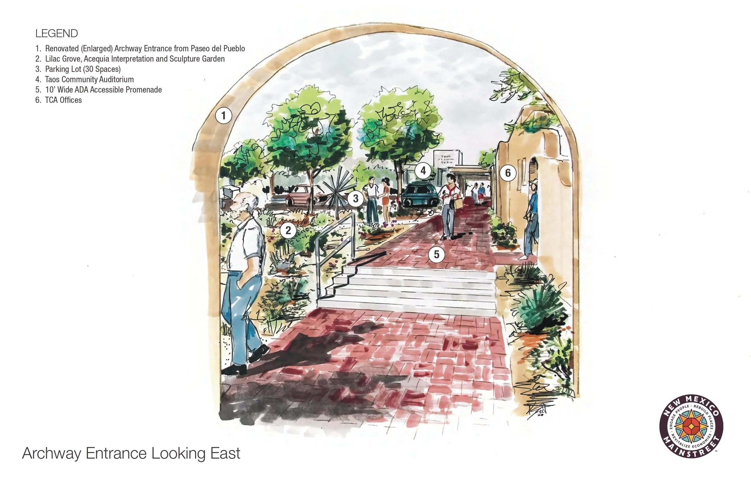 TCA received $50,000 from T-Mobile to transform the Stables Gallery Courtyard into an accessible community space with improved drainage, a new amphitheater, stage, and landscaping, developed with Taos MainStreet, NM MainStreet, and Groundwork Studio.